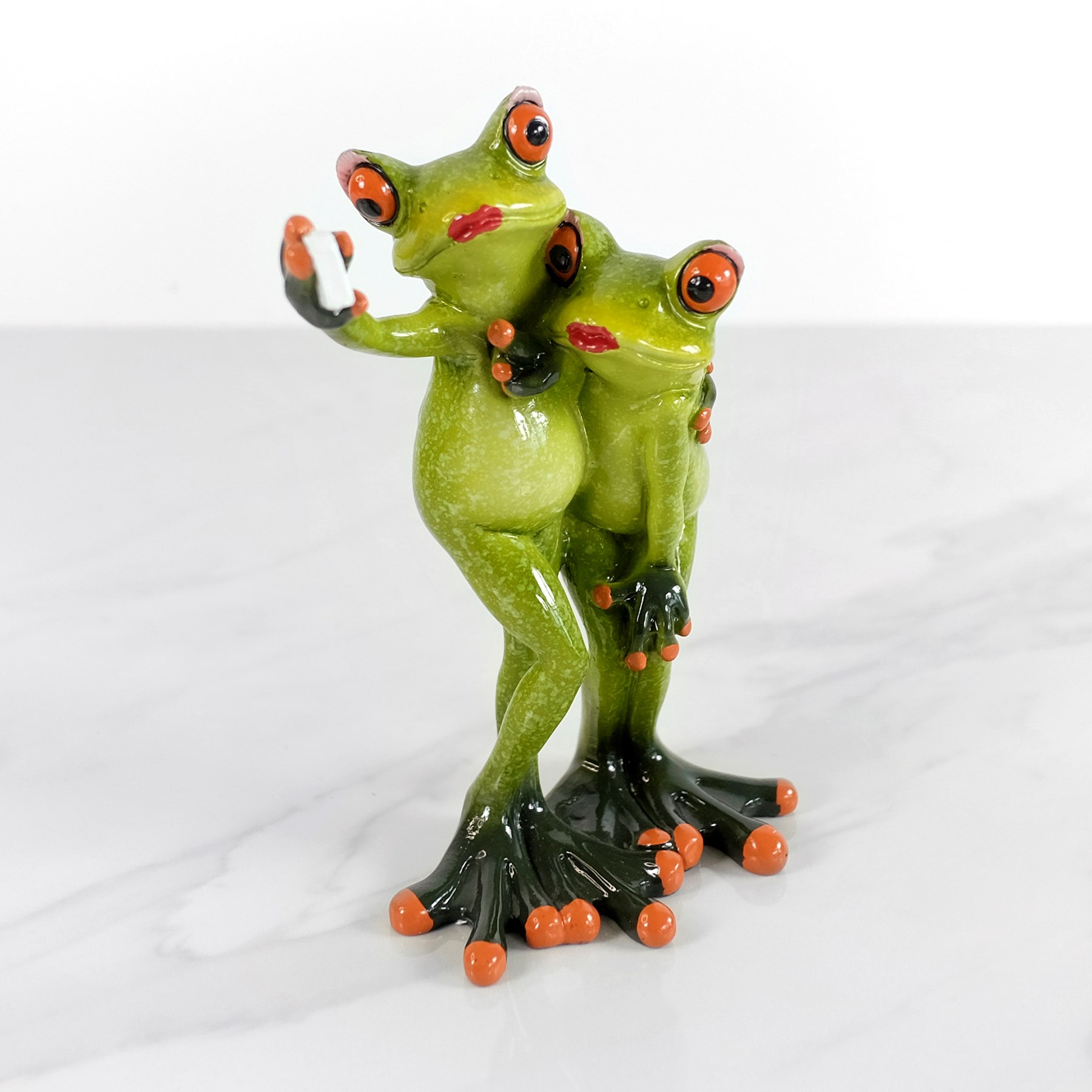 Statue créatives en résine représentant un couple de grenouilles selfie, pour les amoureux des grenouilles, pour bureau, entrée, bibliothèque, bar, décoration d'intérieur, cadeaux.