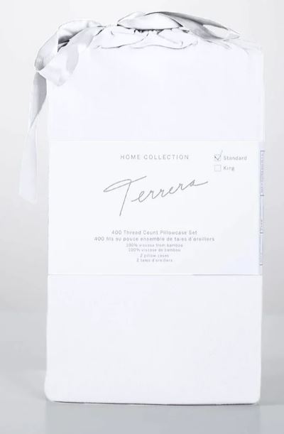 Posez votre tête sur notre ensemble de taies d'oreiller en bambou Terrera ultra doux et soyeux. Fabriqué en viscose de bambou, il est naturellement thermorégulateur et respirant – une excellente option pour les peaux sensibles. Les 400 fils au pouce carré garantissent que vous vous réveillerez rafraîchi.